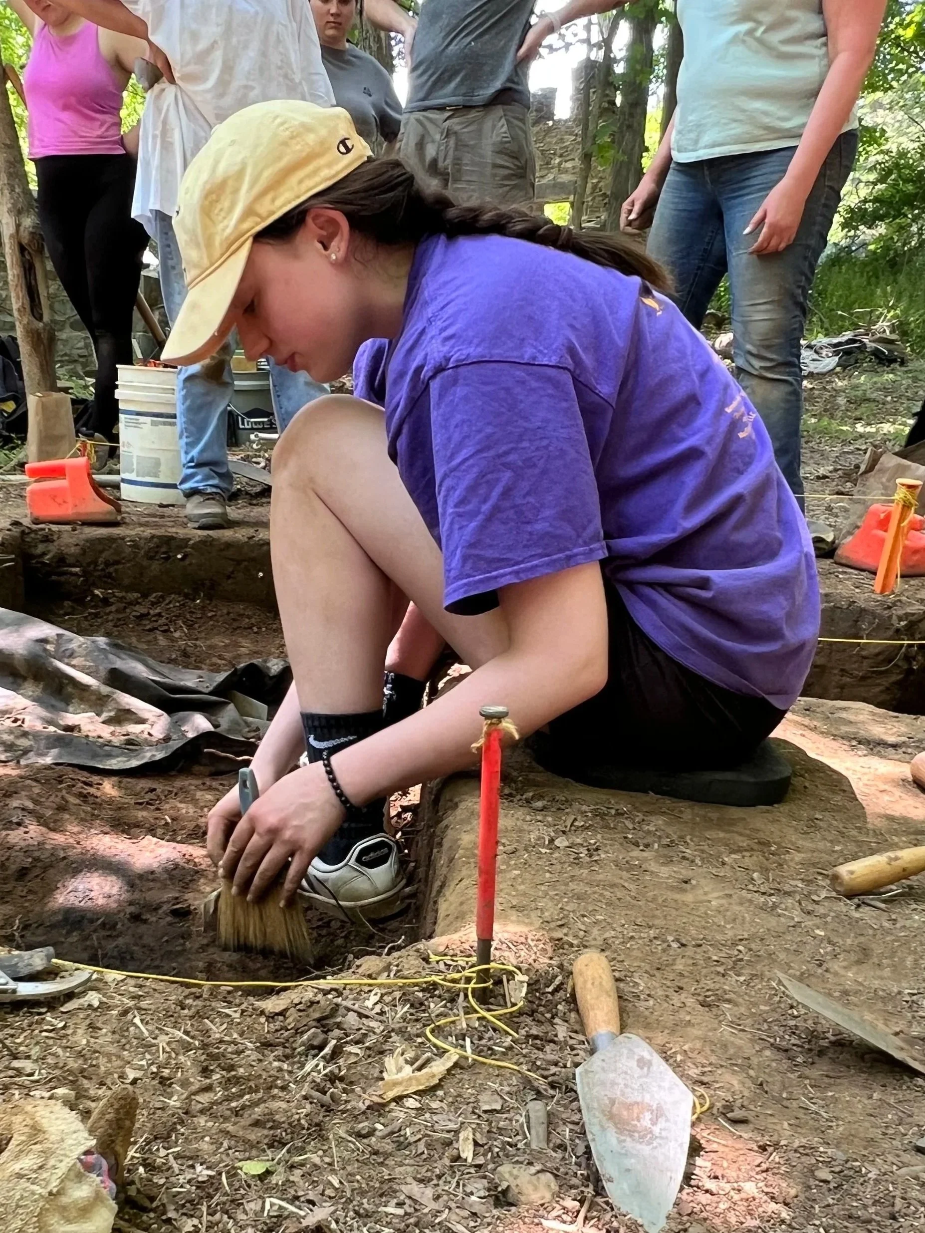 Abbey grew up on a historic family farm alongside her parents, five siblings, dogs, horses, and her cherished chickens. Immersed in gardening, animal care, and homesteading, she honed practical skills from an early age. A curious and creative child, Abbey’s artistic talents shone through in painting, sketching, and transforming unearthed “treasures” into art projects. Her fascination with these finds fueled a lifelong curiosity of ancient cultures and human history that transferred into a lab internship, field school accreditation in archeology, and work as a survey assistant applying anthropological principles. Her fluency in Spanish from college studies in language and culture was sparked by her childhood adventures with Dora the Explorer and support from her favorite HS Spanish teacher—— all compliments of her diverse skill set.Today, as a small farmer and workshop co-host, Abbey weaves together her rural roots, artistic flair, and academic background when creating engaging programming as the director of the farm’s Kids Garden & Greenhouse Camps. Drawing from her personal experiences supporting loved ones with unseen disabilities and navigating the loss of her father to cancer, she designs workshops that resonate deeply. Abbey finds joy sharing the meaningful ways in which crafting with plants and time in nature nurture physical and mental well-being.Abbey holds degrees in both Anthropology and Spanish Language & Culture, and a minor in Latin American Studies. She is fluent in Spanish. She is also a certified life guard and swim instructor and member of the local garden club. Abbey-Archaeological Dig